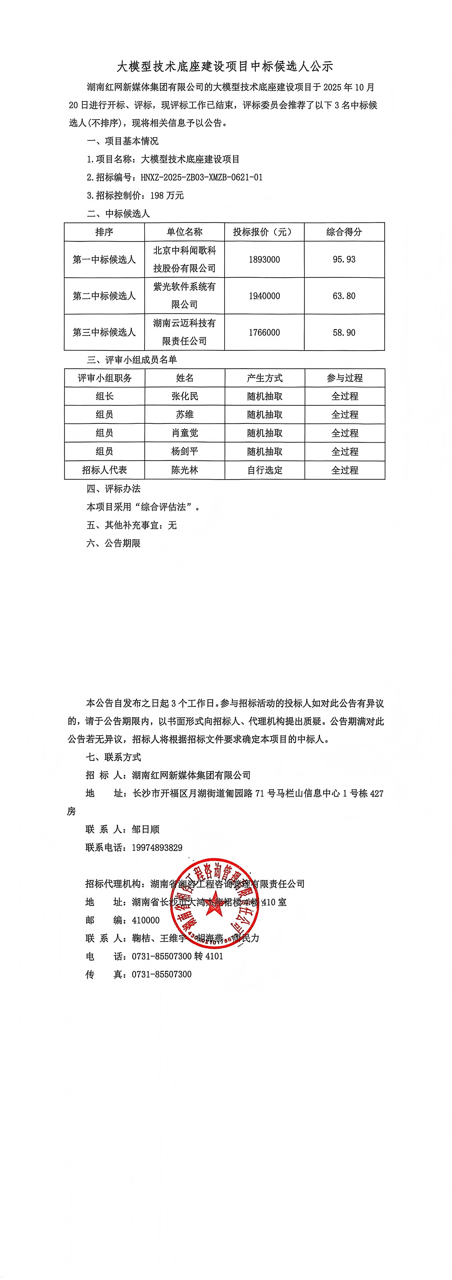 大模型技術底座建設項目中標候選人公示