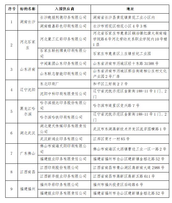 湖南快樂老人傳媒有限公司報社印刷業務供應商庫采購項目于2025年12月26日結束,現將入圍結果公告如下: